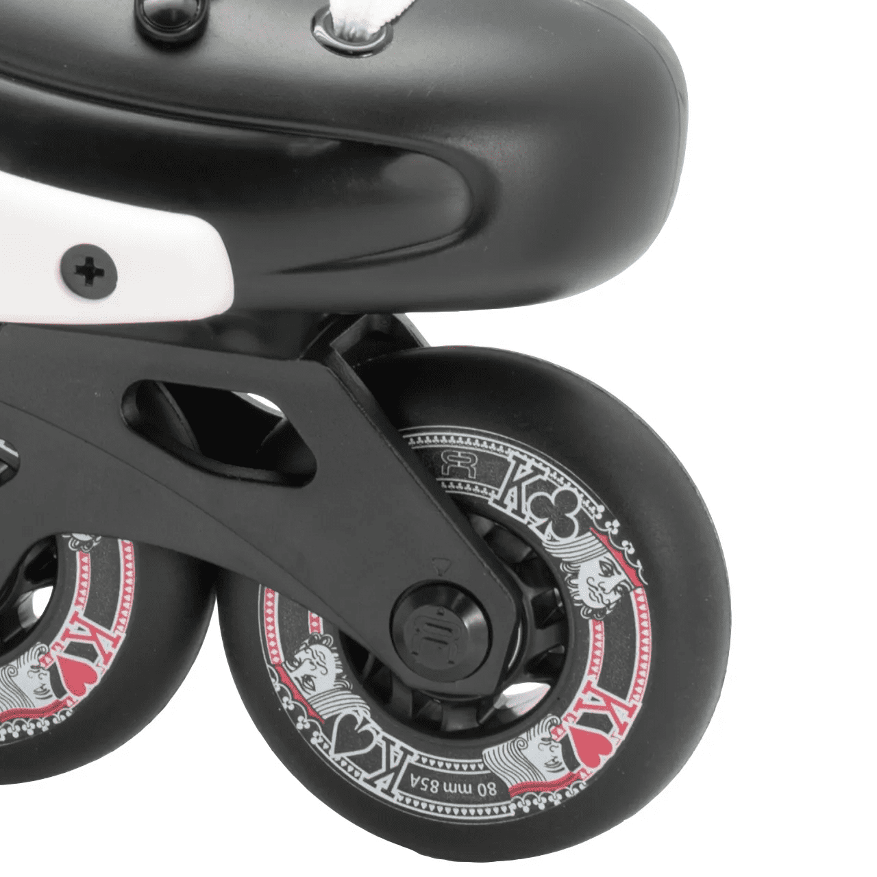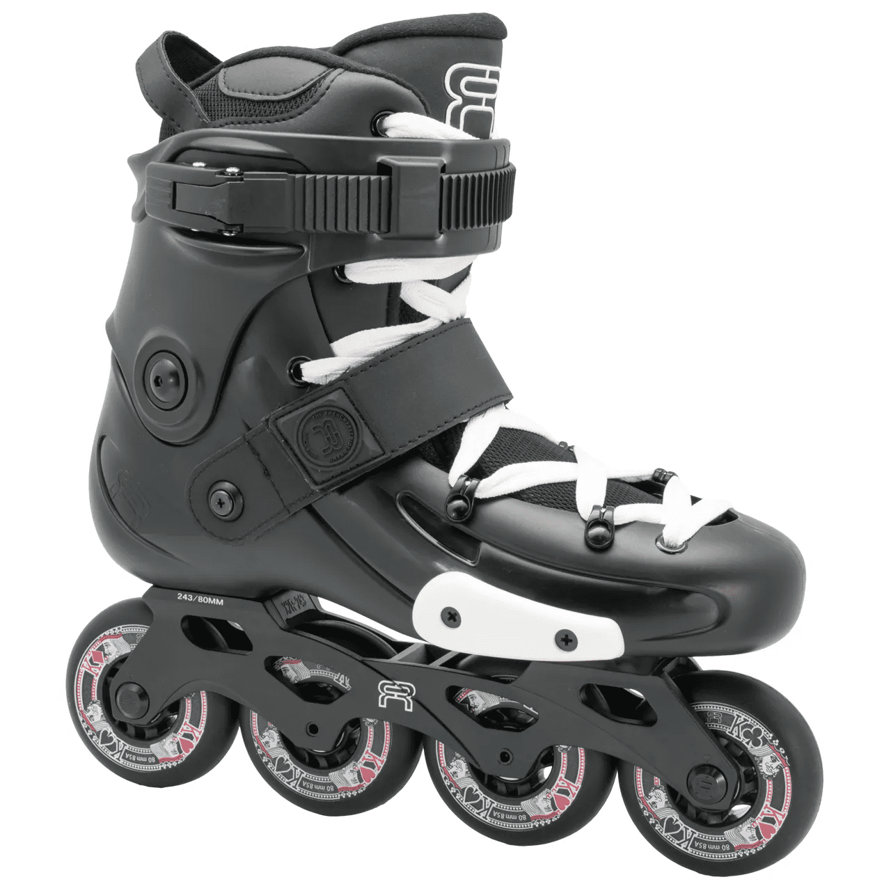 The FR X 80 boot is mounted upon a new X2R 243mm black frame with the wheel of choice for freeride skaters everywhere; the FR Street Kings wheels.