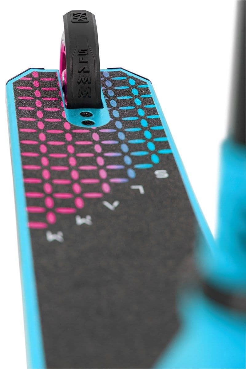 Crafted for optimal performance and precision, Slamm Assault is outfitted with 110mm aluminium wheels and a 4.8” alloy deck featuring a rail extruded neck connector, ensuring stability and control during stunts. Tailored for both beginner and intermediate riders, the Slamm Assault showcases a sleek and modern design, available in various colour combinations. The scooter's durable build not only enhances agility but also makes it an ideal choice for skill improvement. Its robust construction ensures reliability during tricks, while meticulous engineering guarantees top-notch performance in skate parks or on city streets. Prioritising safety without compromising excitement, the Slamm Assault instils confidence in young riders, allowing them to explore their potential, while standing out from the crowds with the Duo Tone Split design on the deck.
